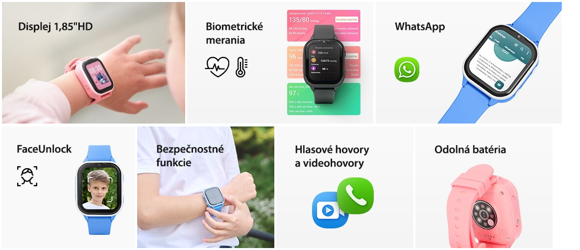 Meranie biometrických parametrov je dôležitým prvkom starostlivosti o zdravie a pohodu. Hodinky umožňujú presné merania vďaka vstavaným funkciám ako merač srdcovej frekvencie, pulzný oxymeter, tlakomer a teplomer. Výsledok merania je možné skontrolovať priamo na hodinkách. Vďaka tomu majú rodičia plnú kontrolu nad zdravím svojho dieťaťa.