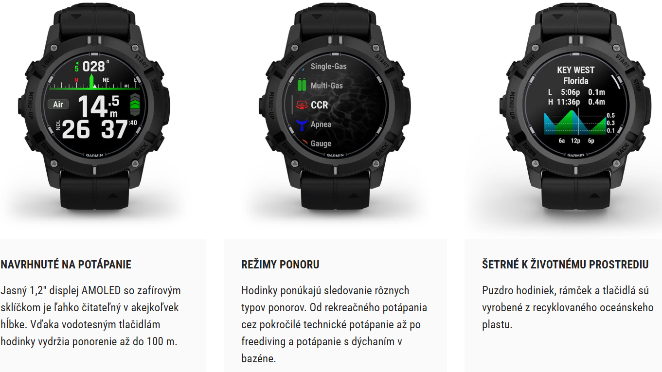 Hodinky Descent G2 sú potápačské hodinky GPS s displejom AMOLED, ktoré ponúkajú aj kombináciu športových, zdravotných a smart funkcií. Sú vyrobené z recyklovaného oceánskeho plastu.