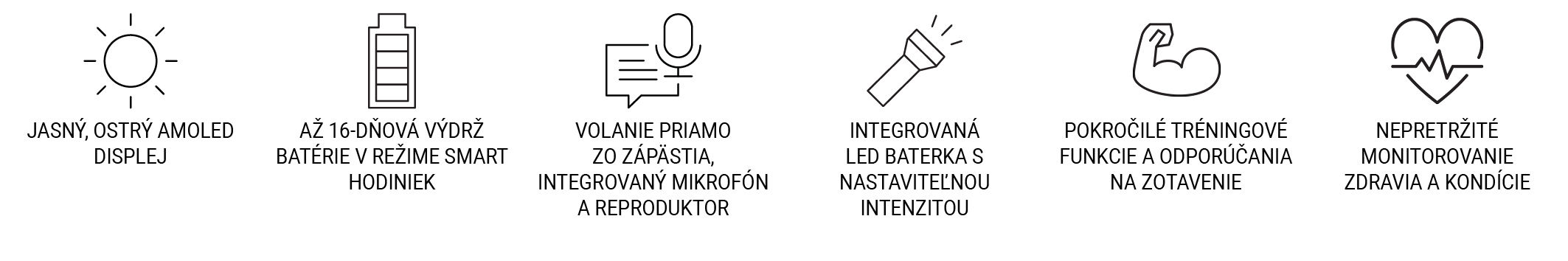 BE LIMITLESS Prémiové GPS smart hodinky s vysokou odolnosťou a dlhou životnosťou. Elegantný dizajn, všestranné športové a outdoorové použitie. Pokročilé tréningové funkcie, zabudovaný mikrofón a reproduktor, integrovaná LED baterka a nové funkcie na potápanie.