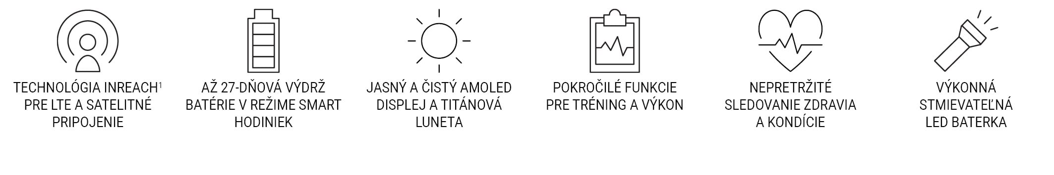 Priekopnícke multišportové smart GPS hodinky, navrhnuté pre športovcov a dobrodruhov, prinášajú komunikačné možnosti do aktivít, pri ktorých nemôžete nosiť telefón. Pri pripojení k sieti LTE môžete využívať integrovanú technológiu inReach® na hlasové hovory a zdieľanie polohy LiveTrack™. Alebo môžete využívať obojsmerné zasielanie správ a interaktívne funkcie SOS prostredníctvom pripojenia LTE alebo satelitného pripojenia mimo siete.