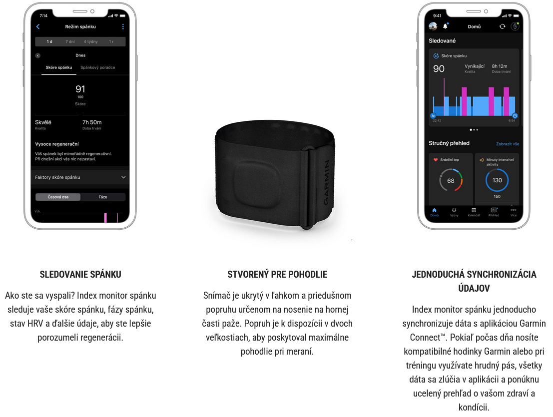 Ľahký, smart a maximálne pohodlný. Index monitor spánku sleduje váš spánok a ponúka tak možnosť komplexnej analýzy vášho oddychu a regenerácie.