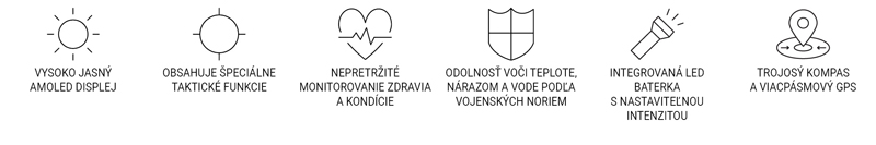 Špeciálne taktické funkcie zahrňujú aktivitu Jumpmaster, projekciu trasových bodov, duálny formát súradníc GPS, predinštalovanú taktickú aktivitu, režim Stealth Mode, funkciu Killswitch a aktivitu Rucking. Hodinky majú vysoko odolnú konštrukciu s lunetou vystuženou kovovými prvkami a displejom pokrytým tvrdeným sklom so zvýšenou ochranou proti poškriabaniu. Hodinky spĺňajú americké vojenské normy pre odolnosť voči teplote, nárazom a vode.