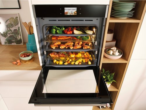 Kombinácia MultiFlow 360˚a HomeMade tvaru rúry u niektorých rúr gorenje, pomáha dosiahnuť ten najťažší cieľ: pečenie až na 5 plechoch súčasne. Dobrou správou je, chute a vône sa nezmiešajú. Inteligentná distribúcia vzduchu zaisťuje, že jedlo je rovnomerne upečené na každej úrovni. Väčší objem rúry tiež zabezpečuje vynikajúci prehľad.