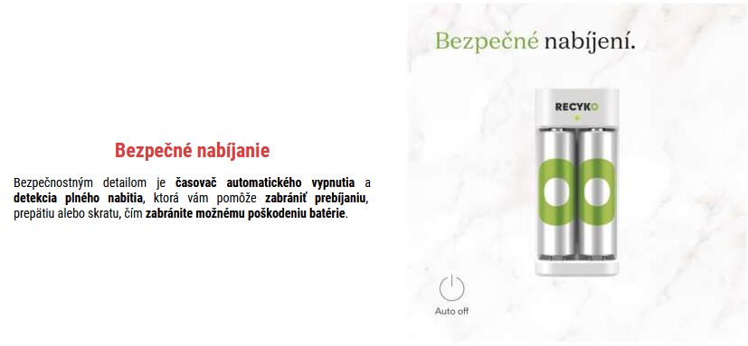 doba nabíjania AAA 1 000 mAh - 4:00h doba nabíjania AA 2 700 mAh - 10:00h doba nabíjania priložených článkov - 8:00 |