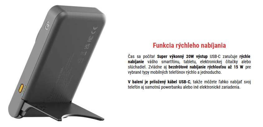Popis produktu GP Q05B 5000mAh čierny Wireless 20W
