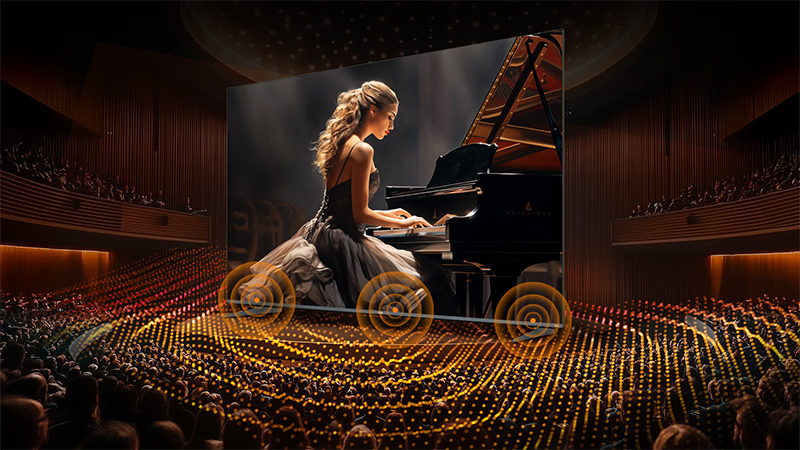 Bohatý, pohlcujúci zvuk s krištáľovo čistými dialógmi a filmovou hĺbkou, prichádzajúci priamo z prednej časti vášho televízora.
