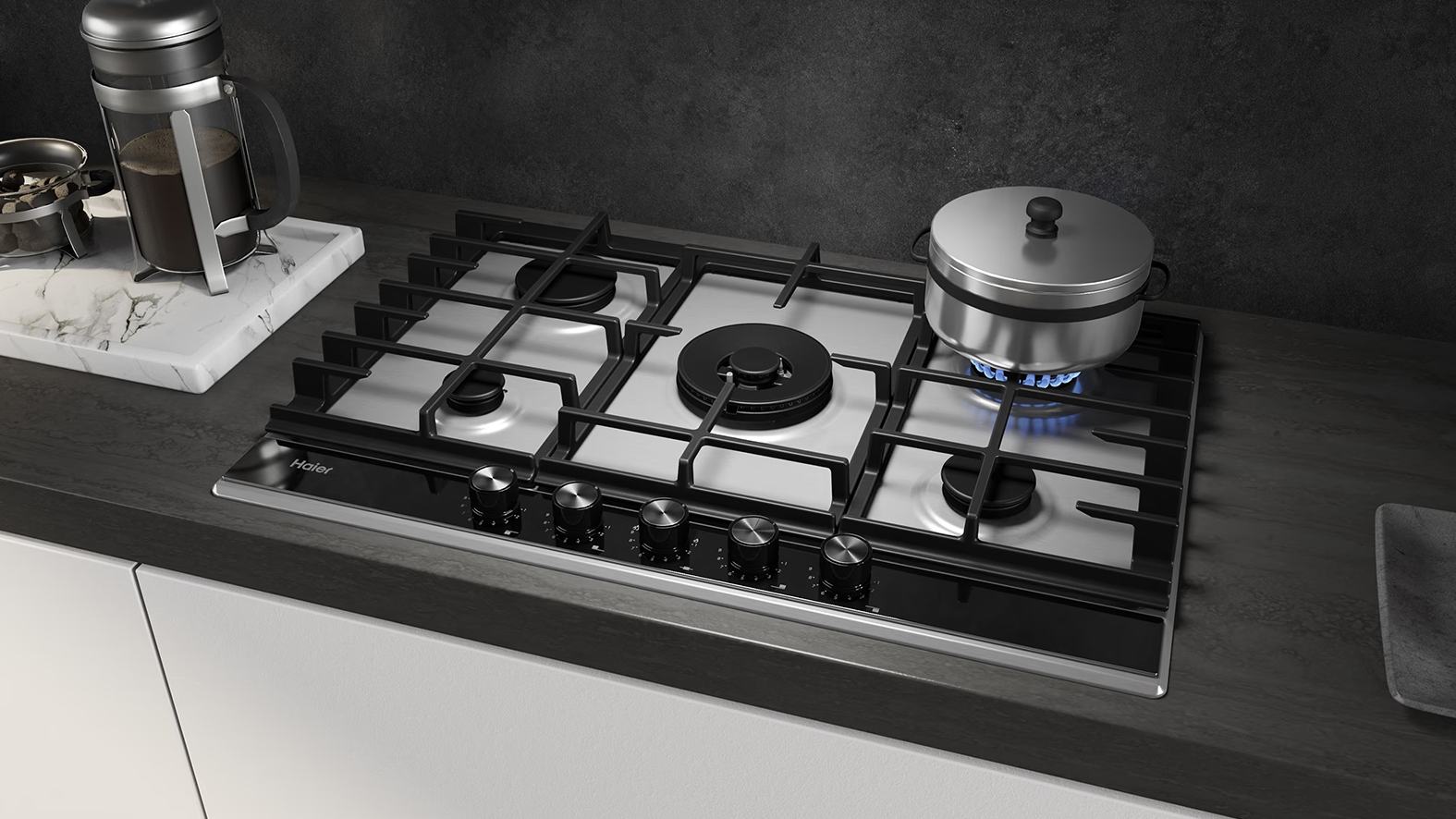 Kovová plynová varná doska Haier Series 4 využíva kombináciu liatinovej varnej dosky a kovového povrchu, čím prináša minimalistický a elegantný vzhľad do vašej kuchyne.