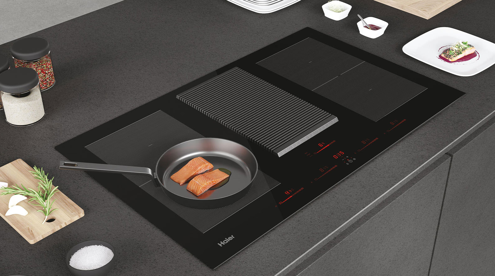 Táto varná doska je vybavená moderným multisliderom, ktorý sa rozsvieti iba pri zapnutí dosky. Celý jeho dizajn využíva červenú farbu v rôznych odtieňoch – keď nie je aktívny, LED diódy svietia jemne červenou farbou, a po nastavení intenzity sa rozjasnia, čím používateľ okamžite vidí aktuálny výkon dosky.