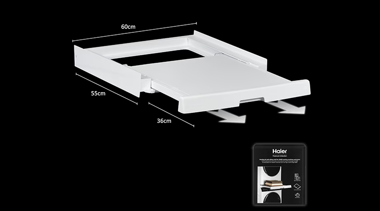 Medzikus Haier s výsuvným šuplíkom uľahčuje vkladanie a vyberanie bielizne. Jeho pohodlná výška umožňuje skladanie bielizne pri vyprázdňovaní sušičky bez ohýbania.