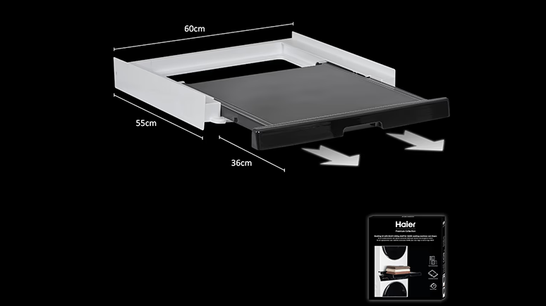 Medzikus Haier s výsuvným šuplíkom uľahčuje vkladanie a vyberanie bielizne. Jeho pohodlná výška umožňuje skladanie bielizne pri vyprázdňovaní sušičky bez ohýbania.