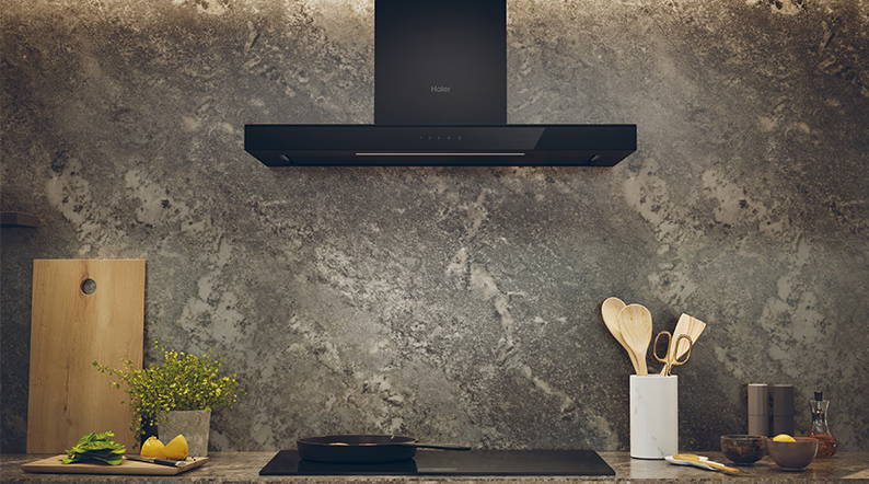 ✔ Moderný motor Haier dosahuje prúdenie vzduchu až 850 m³/h, vďaka čomu udržiava kuchyňu vždy čistú a tichú.