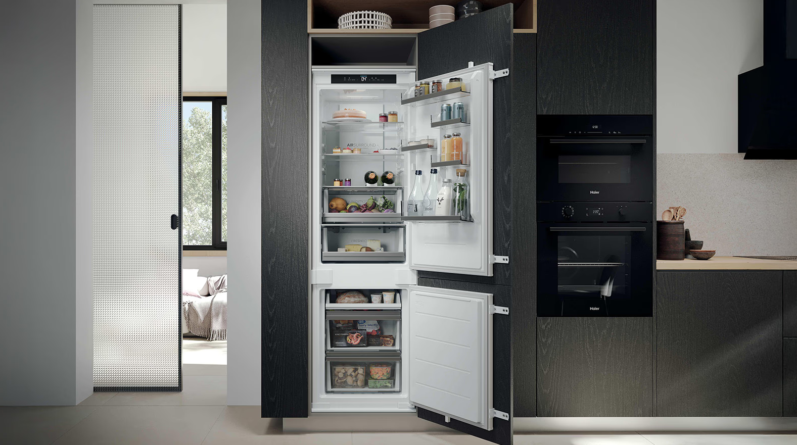 S technológiou Haier Air Surround prúdi vzduch vo vnútri chladničky jemnejším a šetrným spôsobom. Vďaka špeciálnym bočným vývodom tento systém homogénne distribuuje studený vzduch obklopujúci potraviny v celom priestore chladničky, čím sa zabráni priamemu prúdeniu na potraviny bez straty ich hmotnosti a vysušenia potravín. Vďaka tomu dokáže Haier Air Surround zachovať pri potravinách ich chuť, konzistenciu a šťavnatosť až o 99 % aj po 7 dňoch ako pri prvom dni.