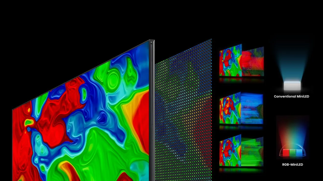 RGB-MiniLED, maximálny jas až 8000 nitov Živé farby. Fantastický jas. Ďalší krok v technológii farieb. Každá jednotlivá Mini-LED sa skladá z 3 farieb a každá farba sa dá individuálne nastaviť v tisícoch lokálnych stmievacích zón RGB. Maximálny jas dosahuje až 8000 nitov, čo zlepšuje kvalitu obrazu a zaisťuje najlepší kontrast a najčistejšie farby.