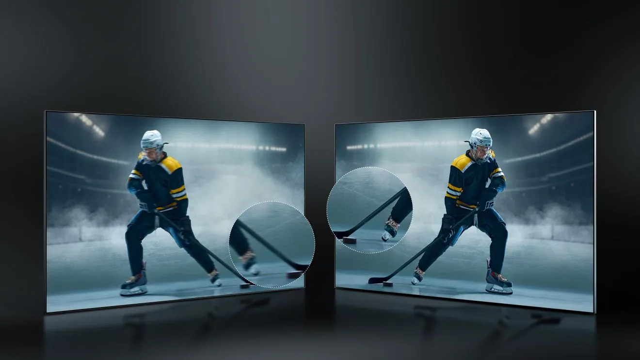 Režim AI Sports, AI Smooth Motion Plynulý pohyb, jasný obraz Vďaka natívnej obnovovacej frekvencii 165 Hz, technológii MEMC (Motion Estimation and Motion Compensation) a režimu AI Sports si môžete vychutnať ultra plynulé pohyblivé obrázky. Televízor identifikuje aj tie najmenšie detaily a odstraňuje všetok šum pomocou dynamického algoritmu prispôsobeného pre pohybujúce sa objekty.