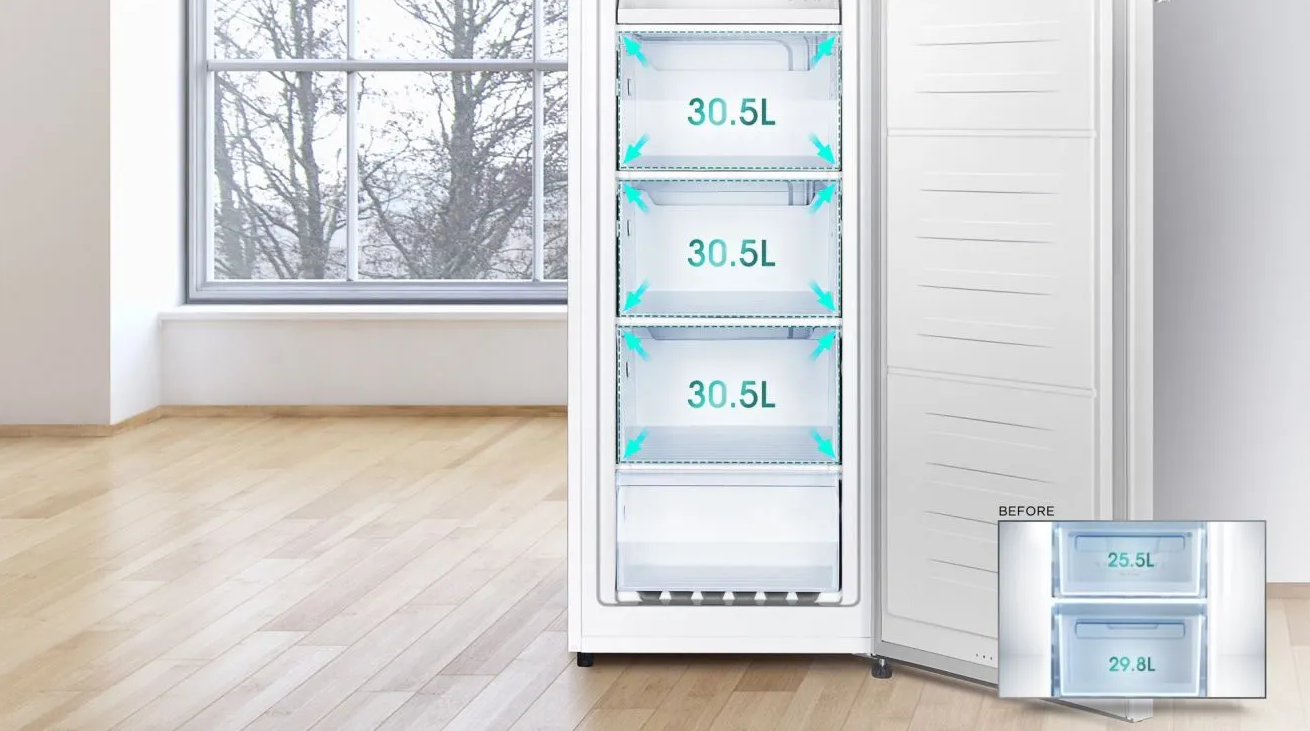 Táto nádherná mraznička si vyžaduje minimum miesta a ponúka veľkú úložnú kapacitu. Vďaka modernému plochému dizajnu dverí dokonale zapadne do každej kuchyne.