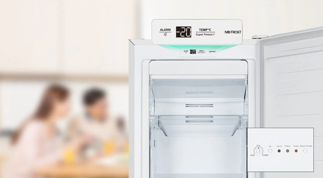 Táto funkcia vás upozorní, ak ste nechali otvorené dvere mrazničky. Inteligentný snímač zistí, že sú dvere otvorené, a spustí zvukový signál, aby sa potraviny nepokazili.