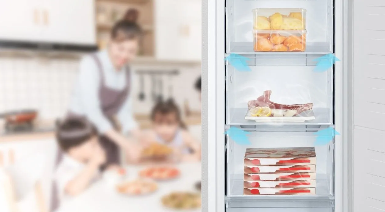 Užitočná funkcia Super Freeze rýchlo zmrazí jedlo na teplotu -18 °C, a to vďaka dvom ventilačným otvorom za horným mraziacim boxom. Potraviny si tak zachovajú lepšiu kvalitu a viac telu prospešných látok.