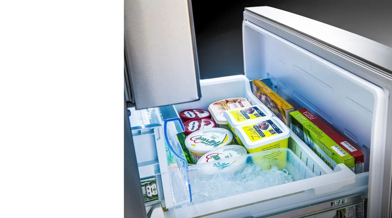 Vo veľkokapacitnom mraziacom priestore nájdete aj miesto na mrazenú pizzu. A vďaka ľahko kĺzavým jazdcom sa zásuvka ľahko vyťahuje, aj keď je plná potravín.