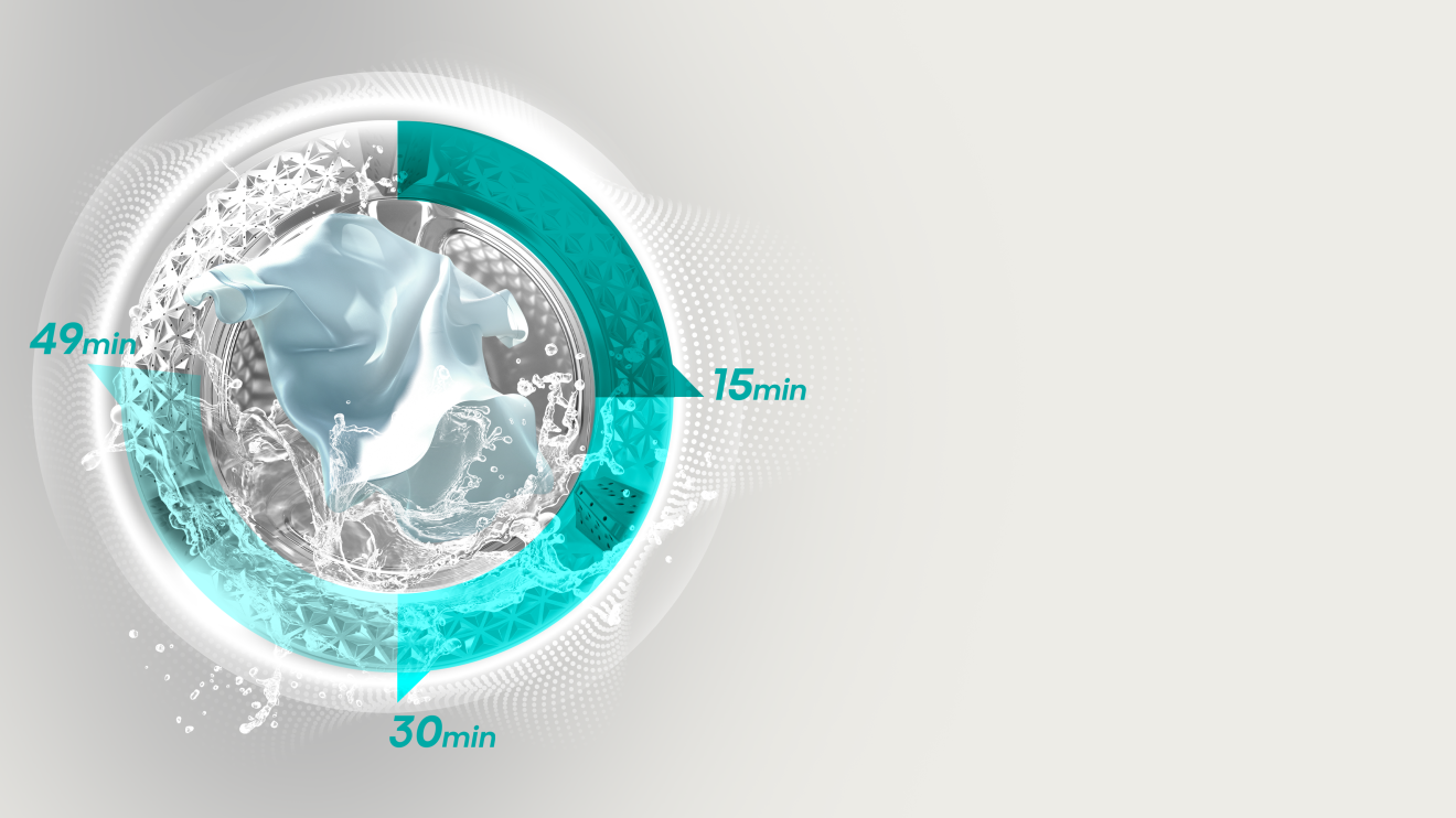 Niekedy ani 49-minútová funkcia rýchleho prania nie je dostatočne rýchla na to, aby sa prispôsobila vášmu nabitému programu. S funkciou Quicker môžete skrátiť dobu prania na iba 30 minút vďaka výkonnému a časovo úspornému programu, ktorý neznižuje kvalitu prania.