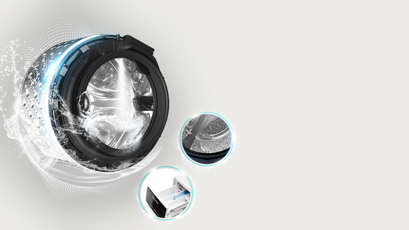 Vďaka antibakteriálnemu materiálu gumového tesnenia získate zdravšie výsledky prania. Funkcia Pure Jet efektívne odstraňuje nečistoty na dvierkach a spodnej časti spotrebiča.