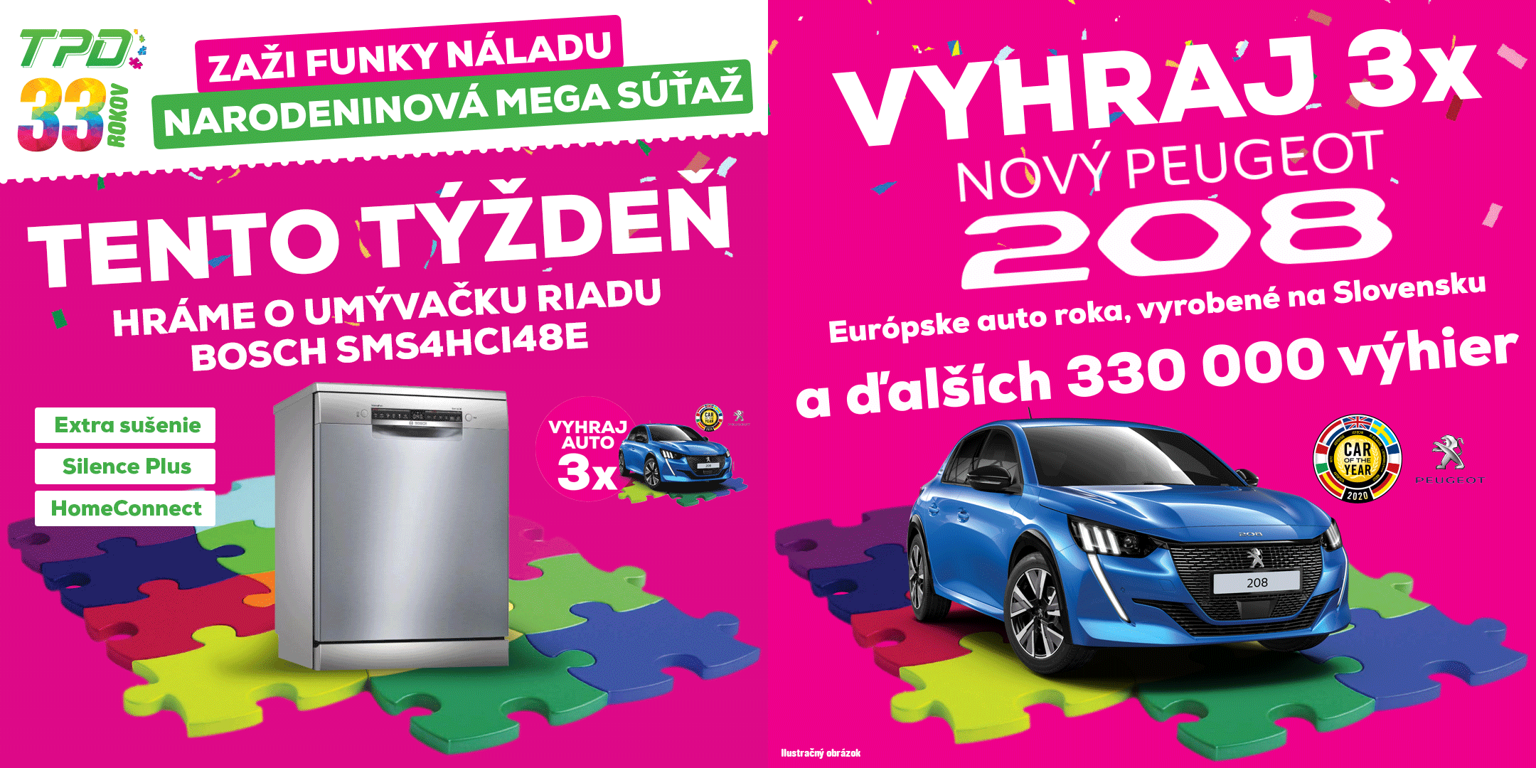 Inteligentnú umývačku riadu BOSCH teraz môžeš vyhrať za svoj nákup na tpd.sk alebo v ktorejkoľvek predajni TPD nad 33€ s DPH.