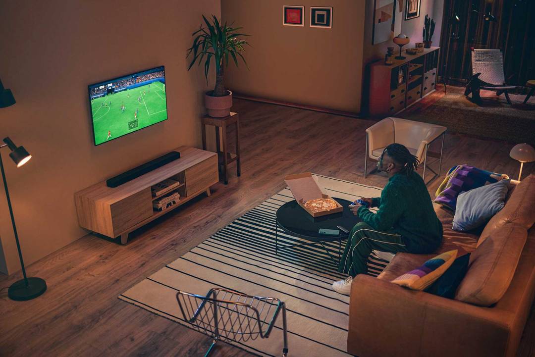 Vychutnajte si nekomprimovaný priestorový zvuk Dolby Atmos bez ohľadu na značku vášho televízora prostredníctvom jediného kábla HDMI vďaka pripojeniu HDMI eARC. Vstup HDMI tiež ponúka kvalitu videa 4K z kompatibilného video prehrávača alebo hernej konzoly.
