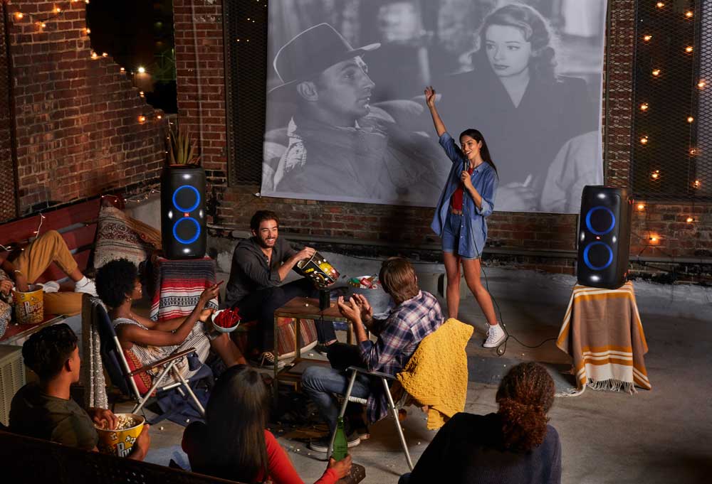 Okolo bloku a spravte svoju párty hlasnou prostredníctvom 240 W ohromného zvuku JBL Pro Sound. Spievajte, rapujte, brnkajte si — potom zosilnite basy a sledujte, ako tanečný parket ožíva.