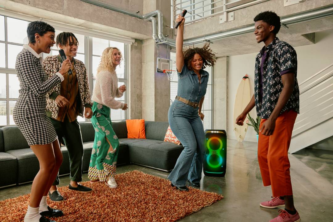 Vychutnajte si výkon s výkonným zvukom JBL Pro Sound z dvoch 6,5” basových reproduktorov, ktoré poskytujú čisté, presné a hlboké basy aj pri najvyššej hlasitosti, a pár 25 mm kupolovitých výškových reproduktorov, ktoré produkujú krištáľovo čisté výšky. Vo vnútri alebo vonku môžete vyplniť hudbou priestor o veľkosti tenisového kurtu.