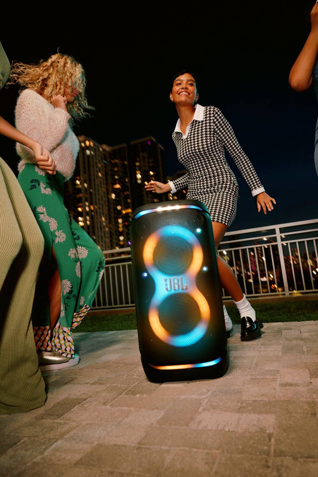 Či už idete na párty s priateľmi v parku alebo pri mori, JBL PartyBox Stage 320 je odolný voči striekajúcej vode IPX4, čo znamená, že malý dážď zábavu nezastaví.