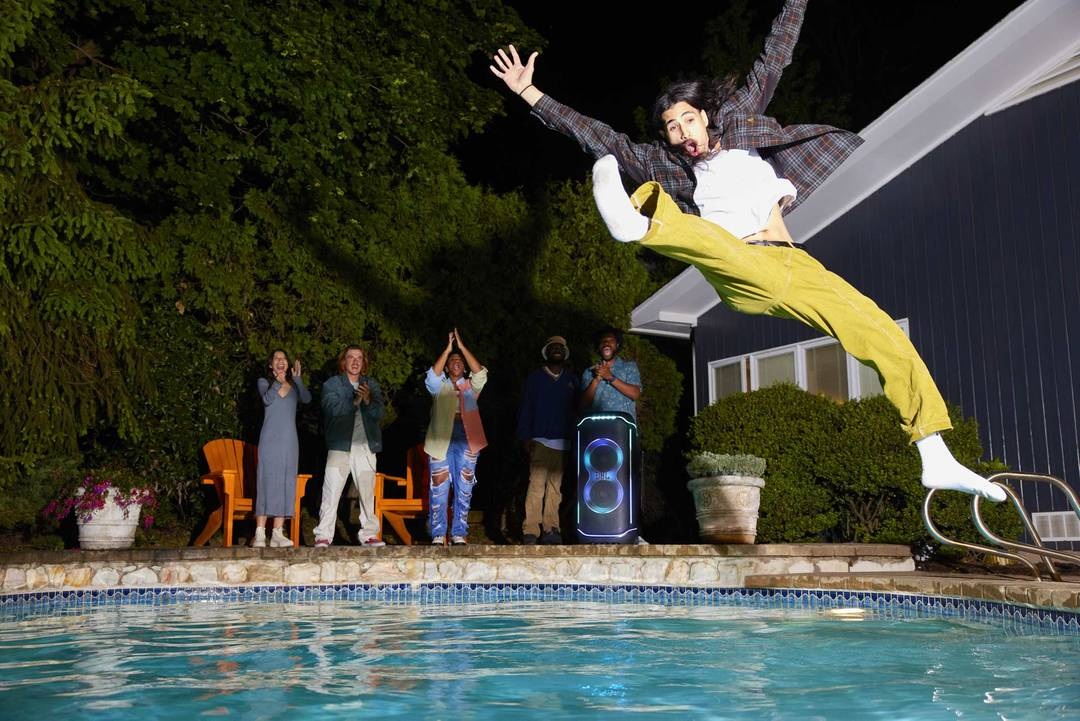Párty bez obmedzení JBL PartyBox Ultimate vyplní toľko priestoru, koľko máte, vďaka vynikajúcemu originálnemu zvuku JBL Pro Sound, podporenému pohlcujúcim zážitkom Dolby Atmos prostredníctvom Wi-Fi*. Pretože každý na párty miluje silný zvuk, či už sa predvádza na tanečnom parkete, alebo vibruje niekde vedľa. Spolu so zvukom, ktorý je krištáľovo čistý aj pri najhlasnejšom tóne, budú vaši hostia nadšení z obrovskej, úchvatnej svetelnej show podmanivých hviezdnych svetiel, chladných svetelných stôp a stroboskopických efektov, ktoré sa pohybujú synchronizovane s vaším rytmom. Zjednodušte si to streamovaním svojho obľúbeného zoznamu skladieb na párty. Dokonca aj na pódiu so vstupmi pre dva mikrofóny a gitaru. Bez ohľadu na to, ako sa veci vyvinú, môžete si vytvoriť svoj vlastný prúd párty pomocou zábavných interaktívnych efektov JBL PartyPad™. Plánujete ešte niečo väčšie? Premeňte svoju párty na plnohodnotnú udalosť. Bezdrôtové spárovanie a pripojenie viacerých reproduktorov je jednoduché nastaviť a prispôsobiť pomocou aplikácie JBL One. JBL PartyBox Ultimate odolný voči striekajúcej vode je samoladiaci a bude znieť najlepšie bez ohľadu na to, kde ho nastavíte. Myslite na tú najúžasnejšiu párty vôbec – a potom to spravte väčšie. Na to bol JBL PartyBox Ultimate vyrobený.