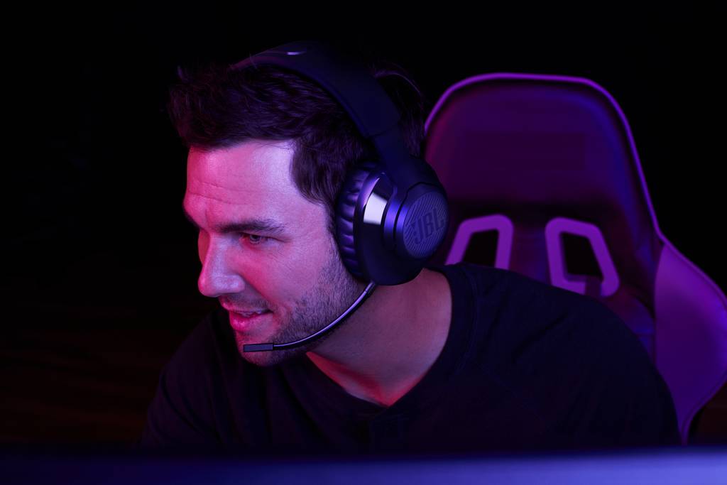 22-hodinová výdrž batérie, rýchle nabíjanie a napájanie a prehrávanie 22-hodinová výdrž batérie znamená vynikajúci JBL zvuk aj počas vašich najdlhších herných relácií. Potrebujete ešte čas? Päť minút vám poskytne ďalšiu hodinu prehrávania a počas hrania sa môžete nabíjať pomocou USB nabíjacieho kábla.