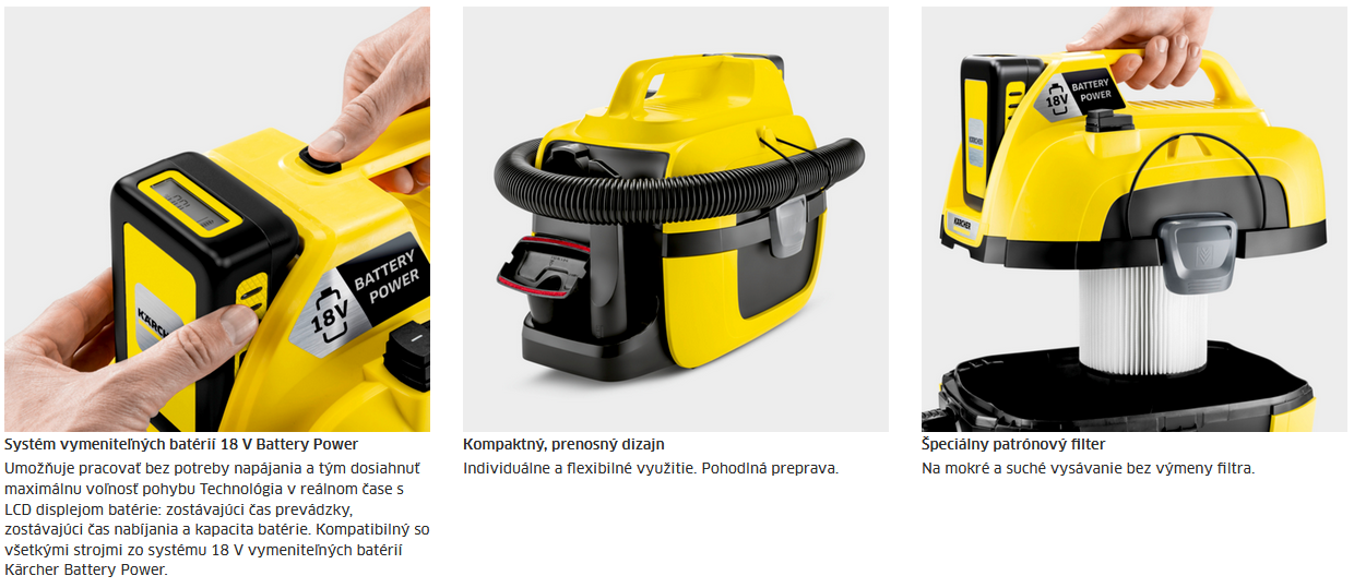 Popis produktu Kärcher WD 1 Compact Battery Set