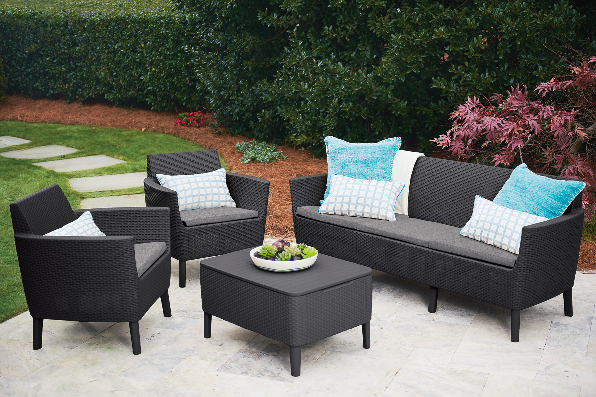 Odpočiňte si na záhrade, pod pergolou alebo na terase a poseďte s rodinou alebo svojimi priateľmi na čerstvom vzduchu. Zaobstarajte si set dvoch kresiel, pohovky a stolíka Keter Salemo. S ich pomocou vytvoríte vonkajšie posedenie podľa svojich predstáv. Nábytok má jednoduchý dizajn. Aj keď je z plastu, jeho textúra na prvý pohľad pripomína prírodný ratan. Záhradný nábytok teda vhodne doplní akýkoľvek priestor na vašom pozemku.
