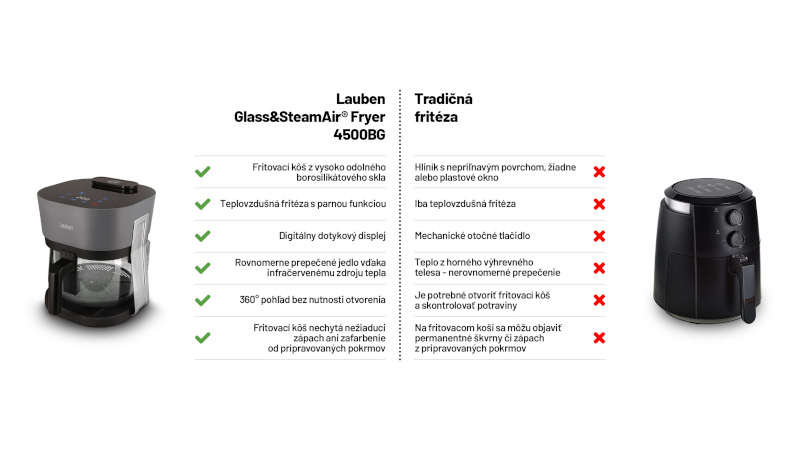 Lauben Glass&SteamAir Fryer 4500BG - Teplovzdušná fritéza s parou