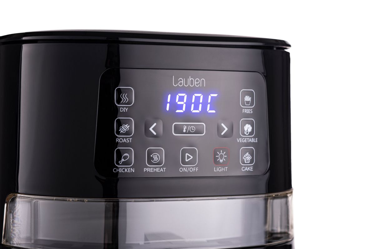 Ovládanie Lauben Air Fryer je intuitívne a zvládne ho každý. Požadovaný program si nastavíte pomocou tlačidiel a na displeji môžete kontrolovať teplotu a dobu prípravy. Vďaka priehľadnej časti fritézy a osvetleniu vnútra môžete pokrm ľahko skontrolovať aj vizuálne. Všetky komponenty, ktoré sa v priebehu prípravy jedla ušpinia, je možné umývať v umývačke riadu. Čerešničkou na torte je vkusný minimalistický dizajn, vďaka ktorému môžete fritézu bez obáv vystaviť na kuchynskú linku, i pokiaľ si potrpíte na estetickosť.
