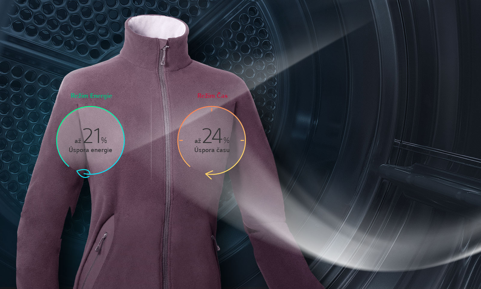 Sušička LG má špeciálny systém sušenia, vďaka ktorému ušetríte buď maximum času alebo energie. Nemáte čas a potrebujete rýchlo usušiť bielizeň? Nie je problém, zvoľte si režim Čas a máte usušené až o 24 % skôr.* Zaujíma vás viac spotreba energie a so sušením sa neponáhľate? Program Energia vám pomôže znížiť spotrebu energie až o 21 %.* K vysokej efektivite sušenia prispievajú aj ďalšie funkcie, ako napríklad automatické čistenie kondenzátoru. To sa spustí až 3-krát počas každého cyklu. Ďalej je sušička vybavená špeciálnymi senzormi, ktoré sledujú zanesenie filtru, výšku vodnej hladiny či vlhkosť bielizne teplotu počas sušenia. Tiež vás upozornia na zle zatvorené dvierka.