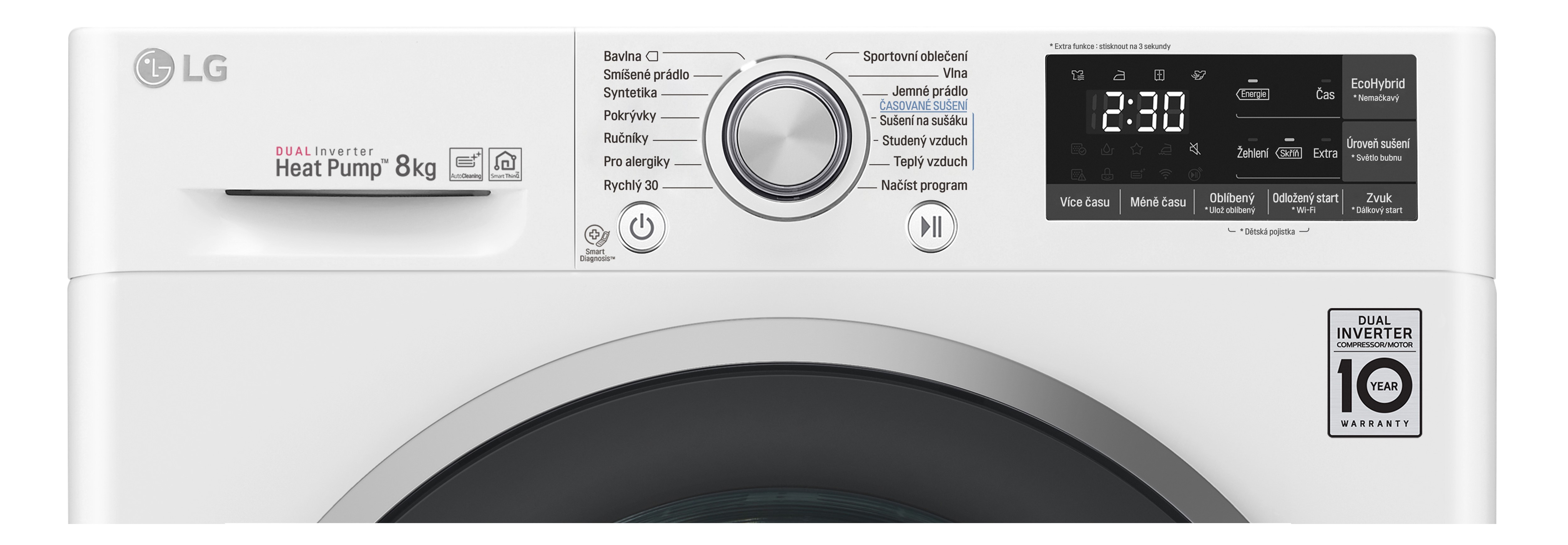 Sušičku LG uvíta doma každý alergik. Jej špeciálny program Pre alergikov dokáže z bielizne odstrániť až 99,9 % všetkých alergénov ako sú napr. roztoče alebo peľ. Ďalšie programy venujú zvláštnu pozornosť aj športovému oblečeniu, vlne a uterákom. Sušenie v sušičke pomáha v boji s nechcenými záhybmi a znižuje pokrčenie. Samozrejmosťou sú aj prídavné funkcie ako nastavenie obojstranného otáčania bubnu alebo nastavenia obľúbeného programu. A keby vám 14 základných programov stále nestačilo, môžete si stiahnuť ďalšie pomocou smartfónu a LG Smart ThinQ.
