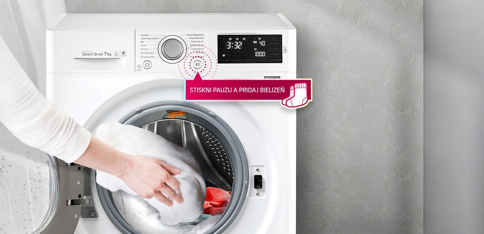 Ak chcete počas pracieho cyklu pridať do práčky ďalšiu bielizeň, stlačte tlačidlo „Pridať bielizeň“ a vložte do práčky zabudnuté ponožky či kabát. Pri programoch Bavlna, Zmiešané bielizeň, Syntetika a Rýchly14 je možné práčku okamžite (do 3 sekúnd) otvoriť aj počas prania.