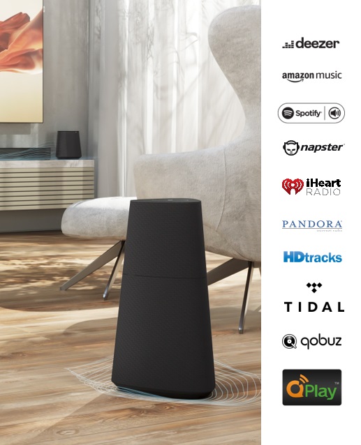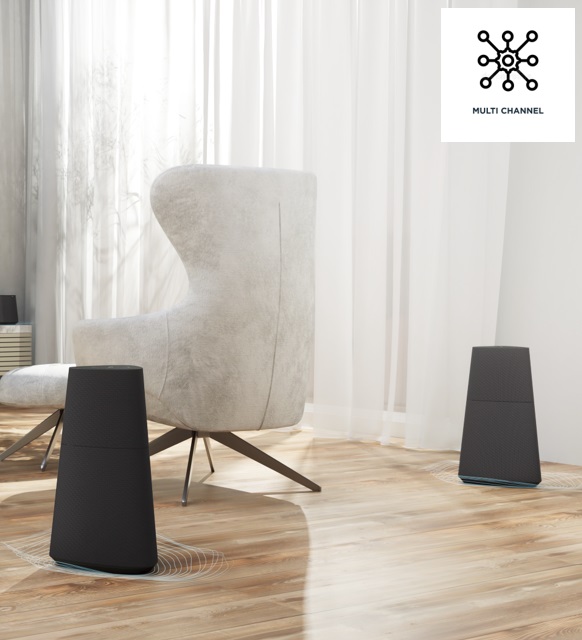 Reproduktor Loewe klang mr5 umožňuje dokonalú interakciu hudby v niekoľkých miestnostiach tým najjednoduchším spôsobom. Vďaka platforme DTS Play-Fi, je možné bezdrôtovo ovládať až 32 reproduktorov z jedného zdroja hudby. Je možné nastaviť až štyri priestorové zvukové rozsahy.