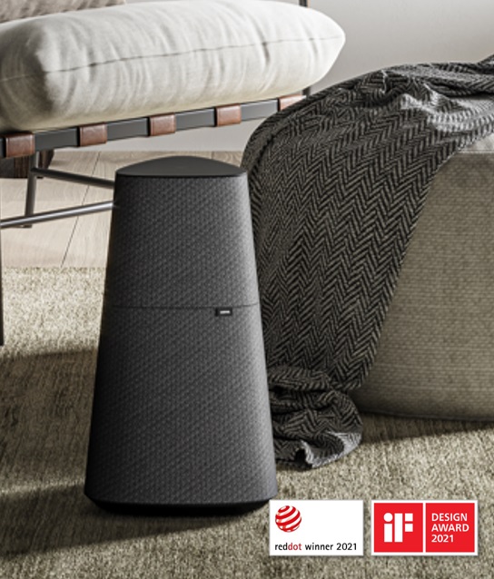 Okrem náročných hudobných nadšencov, zapôsobí tento Loewe klang mr5 aj na milovníkov audio úsporného dizajnu. Mäkký dizajn v tvare kužeľa, vysokokvalitná akustická tkanina špeciálne vyvinutá spoločnosťou Loewe a elegantný sklenený ovládací panel s LED svetlom sa spájajú do jedinečnej symbiózy – pre minimalistický dizajn, ktorý dokonale spĺňa najvyššie nároky na štýlové prostredie bývania. Nápadný a zároveň funkčne-harmonický vzhľad sa bez problémov hodí ako doplnok do každého moderného interiéru. Reproduktory je možné namontovať na stenu, takže sa bude zdať, že sa vznášajú v miestnosti a zdôrazňujú tak jedinečný, vyvážený dizajnový koncept. Dizajn multiroom reproduktora Loewe klang mr5, ktorý bol ocenený renomovanými cenami za dizajn ako je Red Dot winner 2021 a iF Design Award 2021, určite presvedčil porotu.