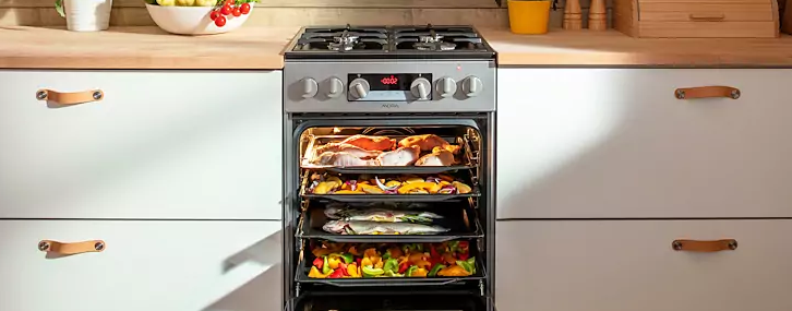 Hravo pripravíte hostinu pre celú rodinu. Pečená morka alebo 3 rôzne chody pečené naraz na niekoľkých plechách. V tejto rúre s objemom 77 litrov sa vždy nájde miesto na všetko, čo máte radi.