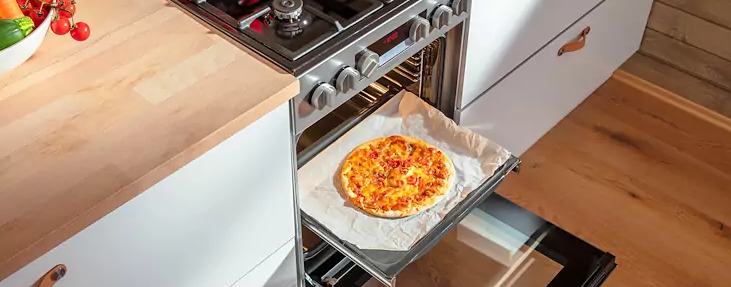 Vyvaľkajte cesto na čo najtenšiu placku, poriadne zakúrte v rúre, a vychutnajte si parádnu pizzu ako z vašej obľúbenej reštaurácie! Kúzlo prípravy pizze v domácich podmienkach tkvie v prvom rade v perfektne vyhriatej rúre. So špeciálnym programom Pizza vyšplhá teplota až na 300 ˚C, takže sa pizza pripraví rýchlo, cesto zostane mäkké a náplň bude čerstvá.