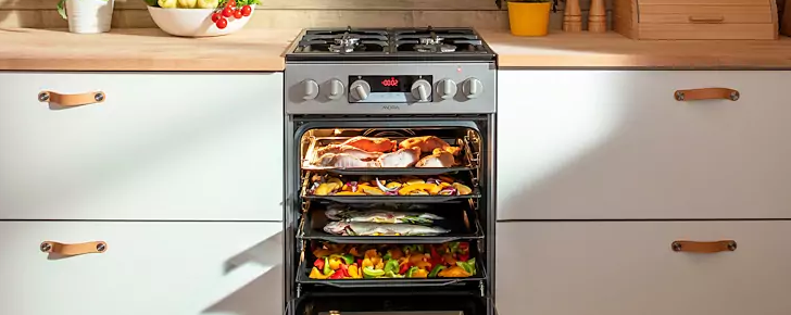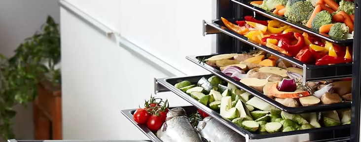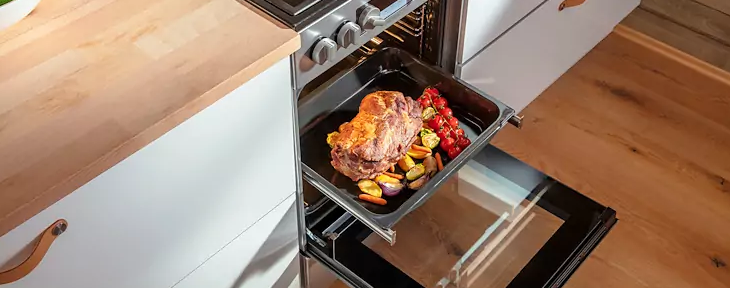 Hravo pripravíte hostinu pre celú rodinu. Pečená morka alebo 3 rôzne chody pečené naraz na niekoľkých plechoch. V tejto rúre s objemom 77 litrov sa vždy nájde miesto na všetko, čo máte radi.