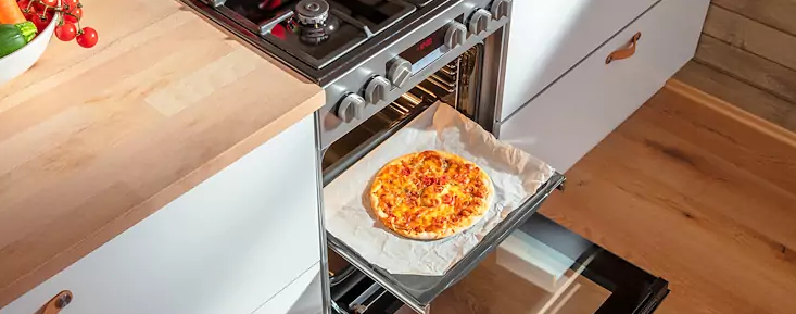 Vyvaľkajte cesto na čo najtenšiu placku, poriadne zakúrte v rúre, a vychutnajte si parádnu pizzu ako z vašej obľúbenej reštaurácie! Kúzlo prípravy pizze v domácich podmienkach tkvie v prvom rade v perfektne vyhriatej rúre. So špeciálnym programom Pizza vyšplhá teplota až na 300 ˚C, takže sa pizza pripraví rýchlo, cesto zostane mäkké a náplň bude čerstvá.