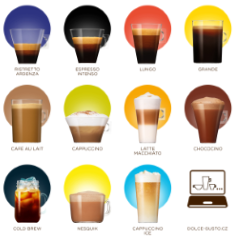 S NESCAFÉ® Dolce Gusto® si môžete vychutnať viac ako 30 druhov nápojov. Vyberať môžete z niekoľkých variantov prémiovej čiernej a bielej kávy. Ochutnajte bohaté ristretto, intenzívne espresso, aromatické lungo, krémové cappuccino, jemné latte macchiato, čaj a lahodné čokoládové alebo osviežujúce studené nápoje.