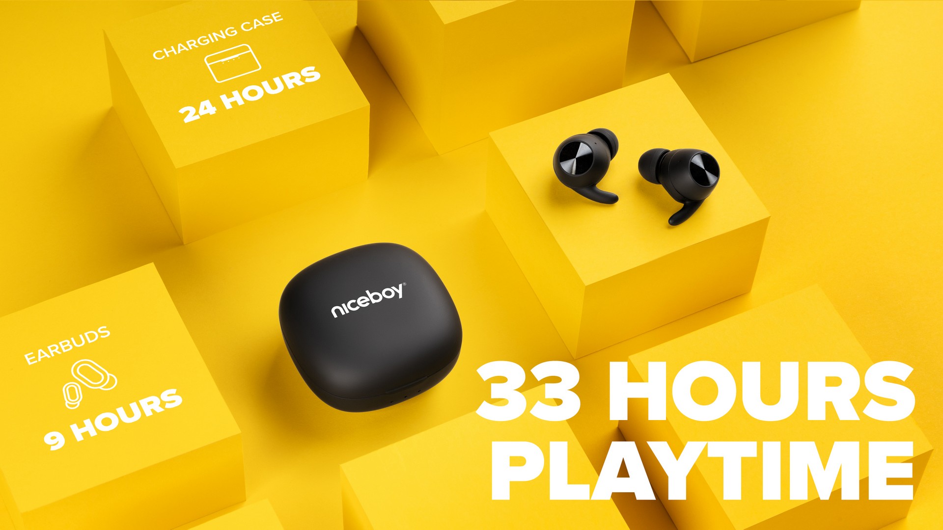 Slúchadlám stačí 5 minút nabíjania a už majú energiu na 1,5 hodiny prevádzky. Pri kompletnom nabití potom máte k dispozícii 9 hodín na počúvanie či telefonovanie, s nabíjacím puzdrom ešte ďalších 24 hodín navyše.
