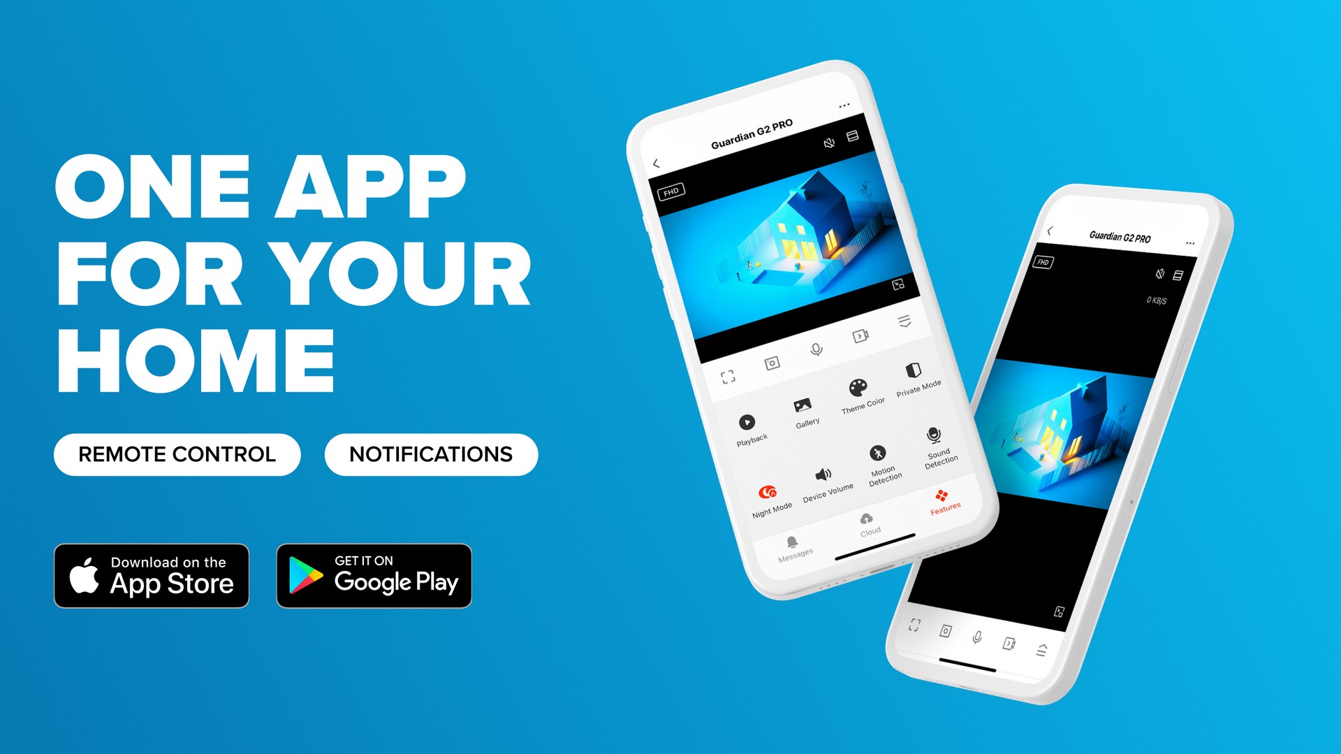 Všetky funkcie kamery Niceboy ION Guardian G2 PRO môžete pohodlne ovládať z mobilného telefónu pomocou aplikácie Niceboy ION. Sledujte živý prenos, prehrávajte zábery a prispôsobte si nastavenia kamery presne podľa svojich potrieb. Aplikácia vás navyše upozorní na každý pohyb alebo zvuk, aby vám nič neuniklo. Zdieľajte prístup k svojmu zariadeniu s ostatnými členmi rodiny a pripojte ďalšie zariadenia Niceboy ION.