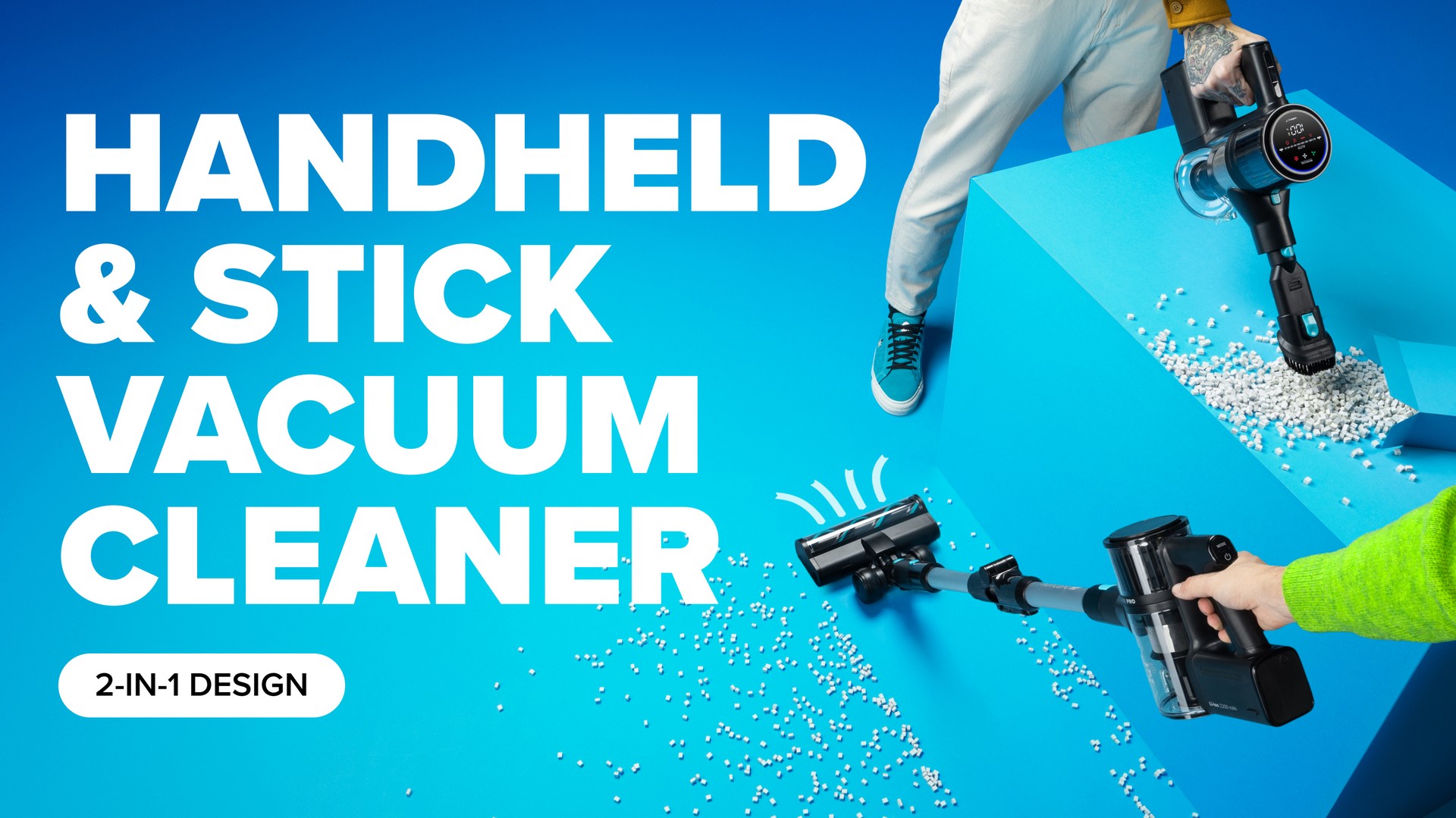 Praktický dizajn 2 v 1 kombinuje ručný a tyčový vysávač