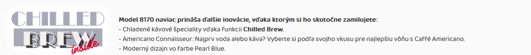Špeciálny model NIVO 8107 prináša ešte viac spôsobov, ako si vychutnať kávu priamo vo vašej domácnosti. S funkciou Chilled Brew možno pripraviť espresso, kávu a caffé americano pri nízkej teplote. Tento nový proces varenia uvoľňuje z každého kávového zrna špeciálnu arómu, ktorá zaisťuje komplexnejšiu chuť. Inšpiráciou pre tento proces varenia je cold brew, druh kávy, ktorá sa varí za studena alebo pri izbovej teplote. Pri použití tradičného prístroja na varenie za studena to však trvá až dvanásť hodín. Kto má toľko času? To je dôvod, prečo má NIVO 8107 trochu iný prístup k procesu varenia. A stále ponúka bohatý kávový zážitok. Rozdiel medzi Chilled Brew a cold brew nespočíva len v čase prípravy, ale aj v chuťovom zážitku. Zatiaľ čo cold brew ponúka intenzívnu, ale často jemnú chuť, Chilled Brew zaujme svojou sviežosťou a zvýraznenými vôňami, ktoré sa zachovajú vďaka kratšiemu času lúhovania. Výsledkom je osviežujúca, aromatická káva, ktorá sa podáva vychladená priamo do šálky.