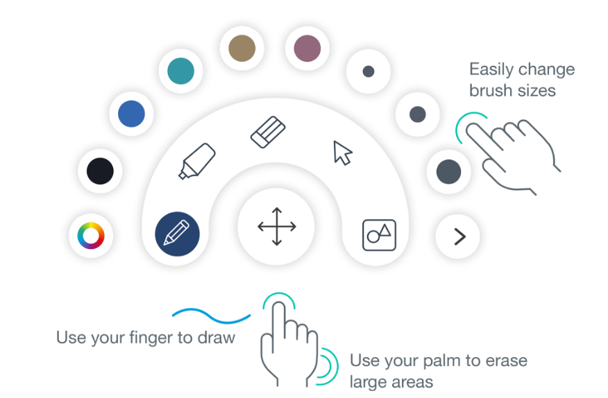 Kreslite kdekoľvek na plochu, píšte alebo vkladajte obrázky a tvary. S nekonečným plátnom budete mať dostatok priestoru pre to čo práve potrebujete vysvetliť.